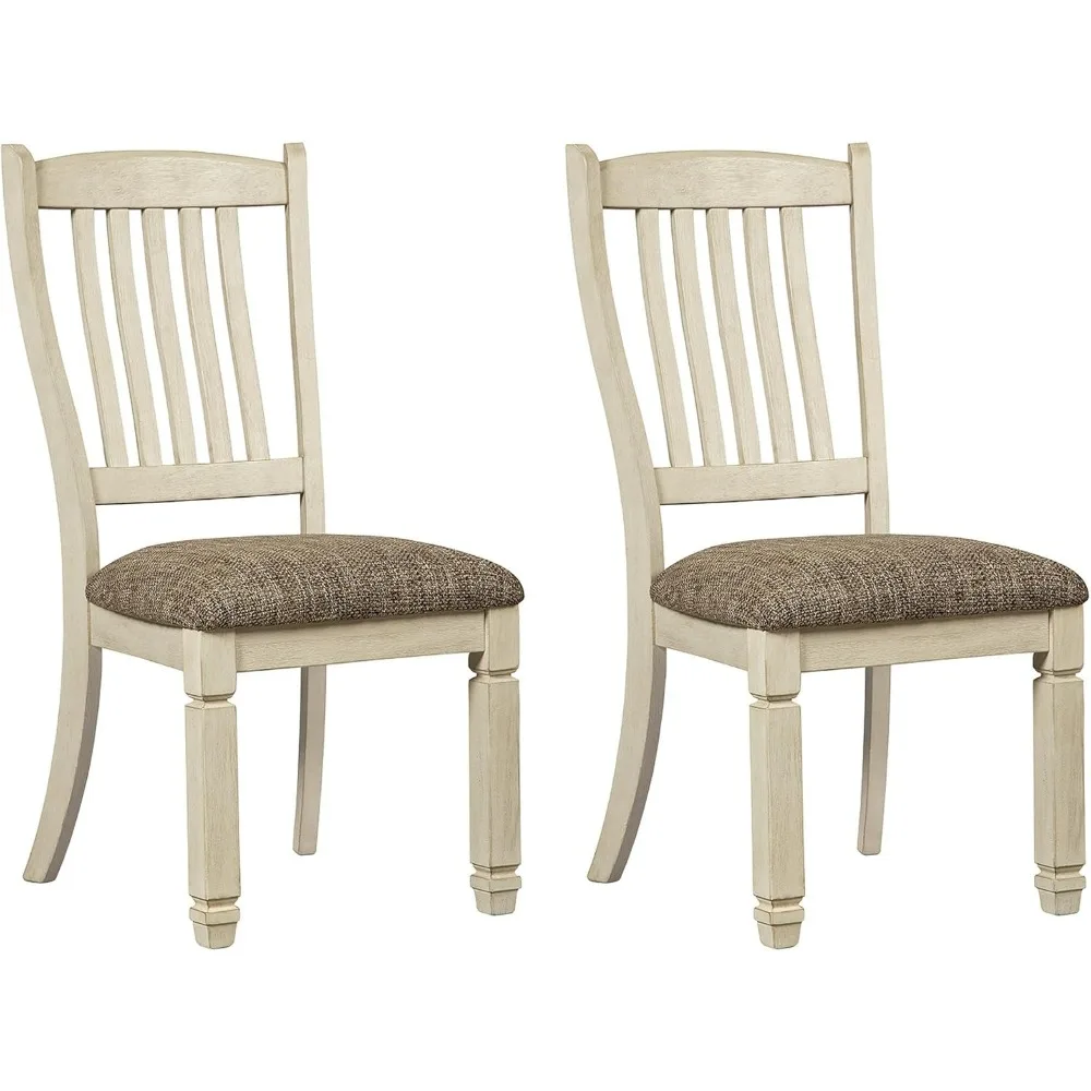 Ashley Bolanburg Collection 20: Pair of Antique White Upholstered Dining Chairs