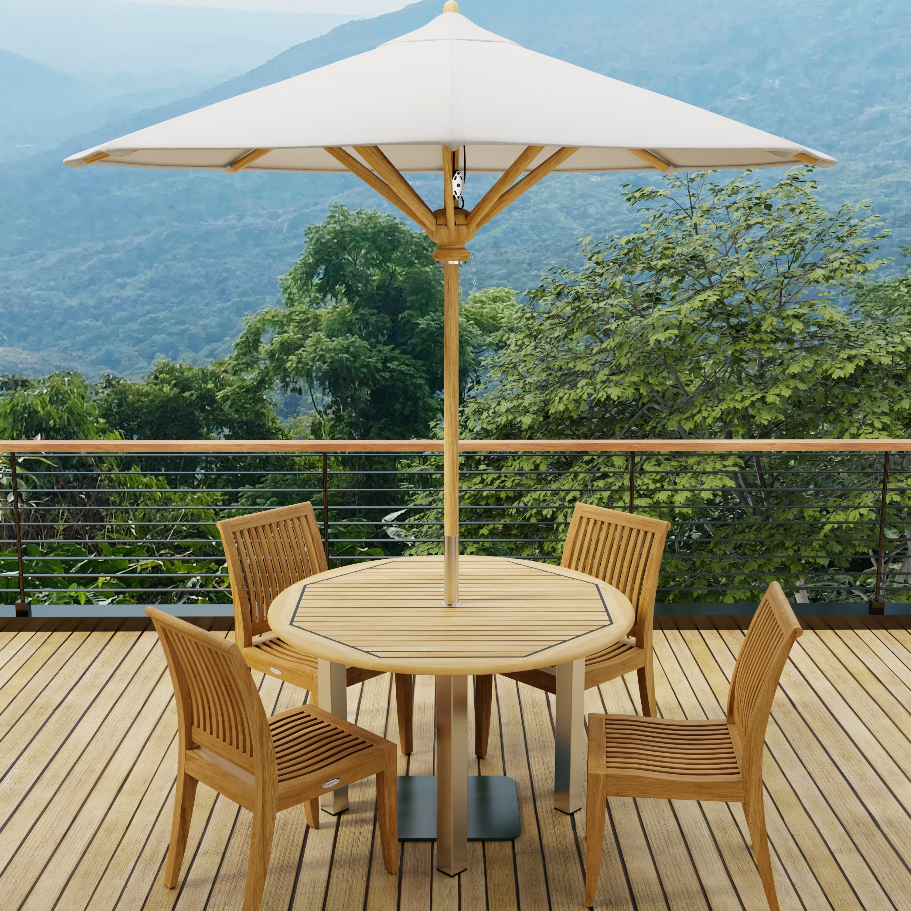 5 piece Teak Dining Set with 4 Ft Round Umbrella Ready Table