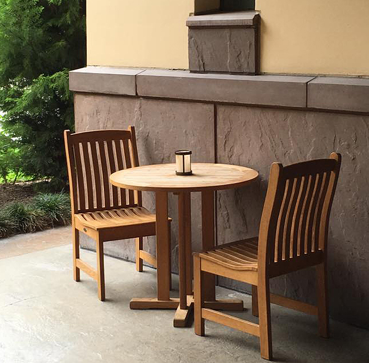 "Westminster Teak Veranda Bistro Dining Set features two side chairs and one round table. Manufactured with the same quality that was rated BEST OVERALL by the Wall Street Journal."  Read more