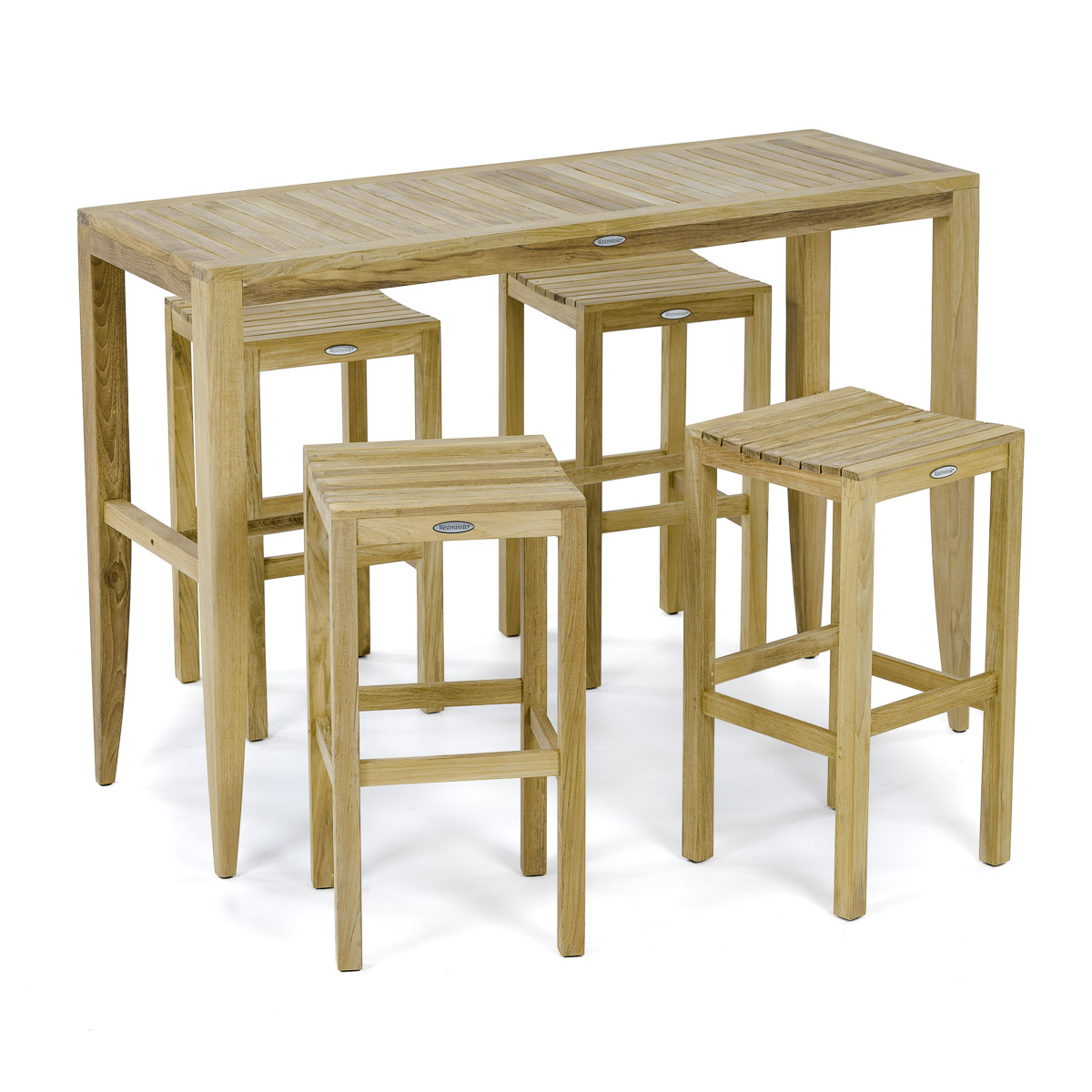 "5pc Premium Somerset Teak Wood Bar Table set built to last a lifetime. Includes 4 Bar Stools and 1 Rectangular Laguna Teak Bar Table. Built to Commercial standards. Lifetime Teak Warranty. Quality Rated Best Overall by Wall Street Journal."  Read more
