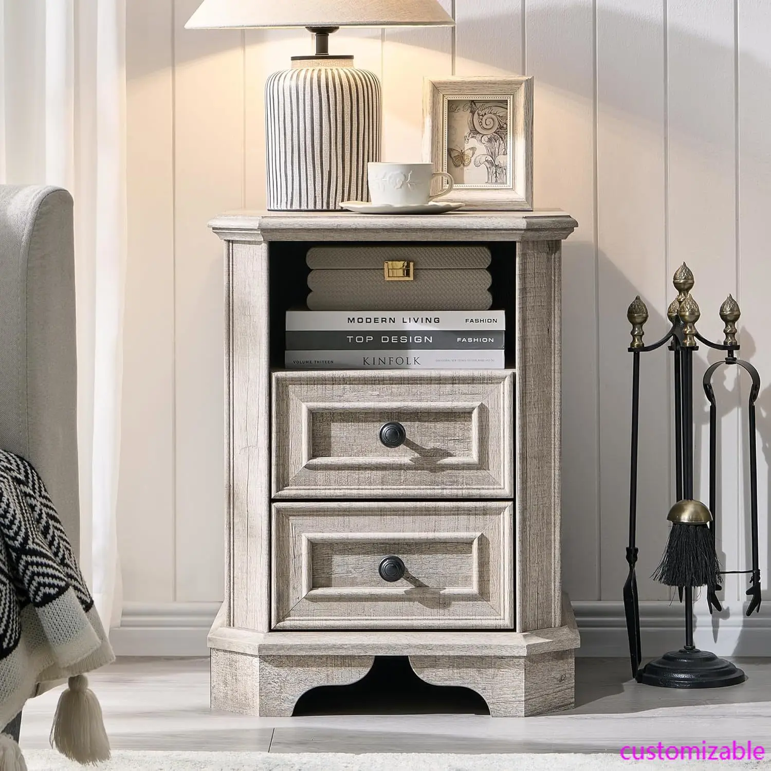 Farmhouse Nightstand with Charging Station, 18" End Table, Wood Side Table, Bedside Cabinet, Living Room (Light Rustic Oak)