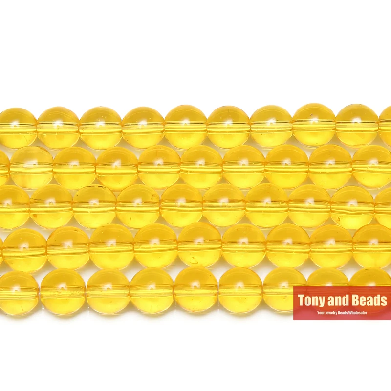 Smooth Yellow Glass Loose Beads 15" Strand 6 8 10 MM Pick Size For Jewelry Making