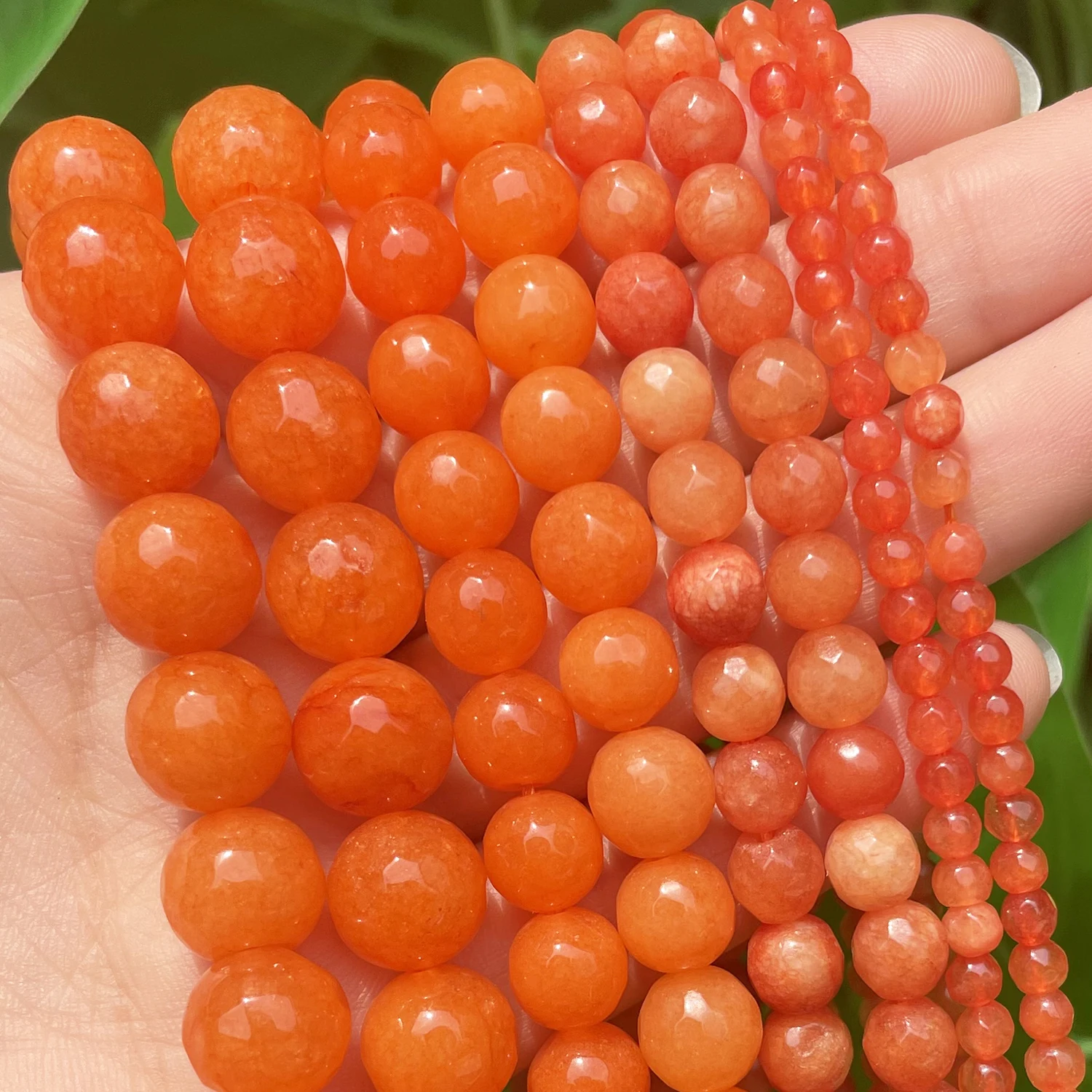 Wholesale Orange Jades Loose Round Stone Beads for Jewelry Making DIY Bracelet 15'' Strand 6mm 8mm 10mm 12mm