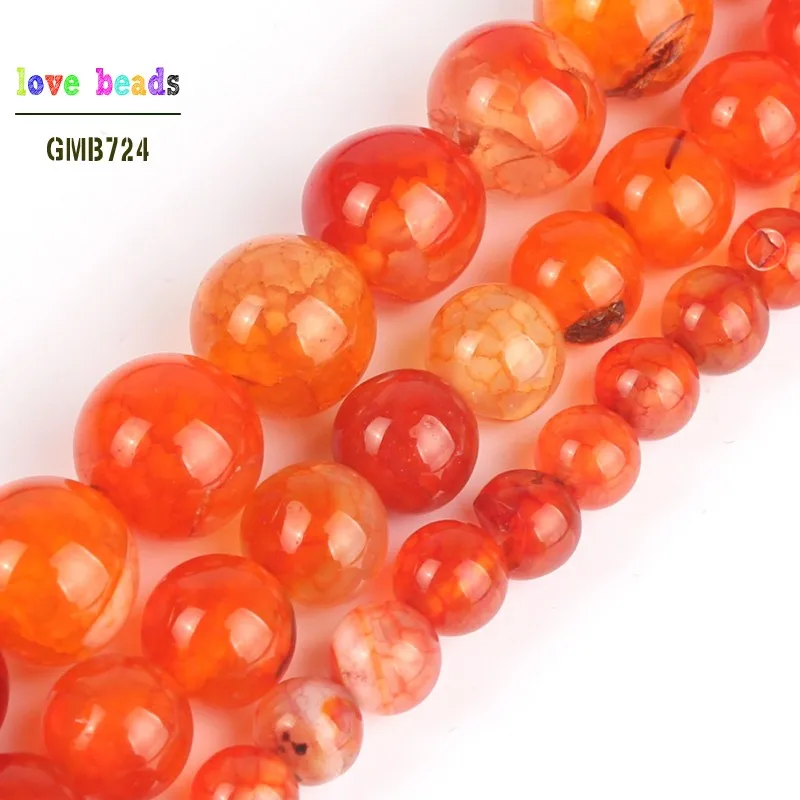 Natural Orange Fire Dragon Veins Agates Round Loose Stone Beads for Jewelry Making DIY Bracelets 15'' 6mm 8mm 10mm