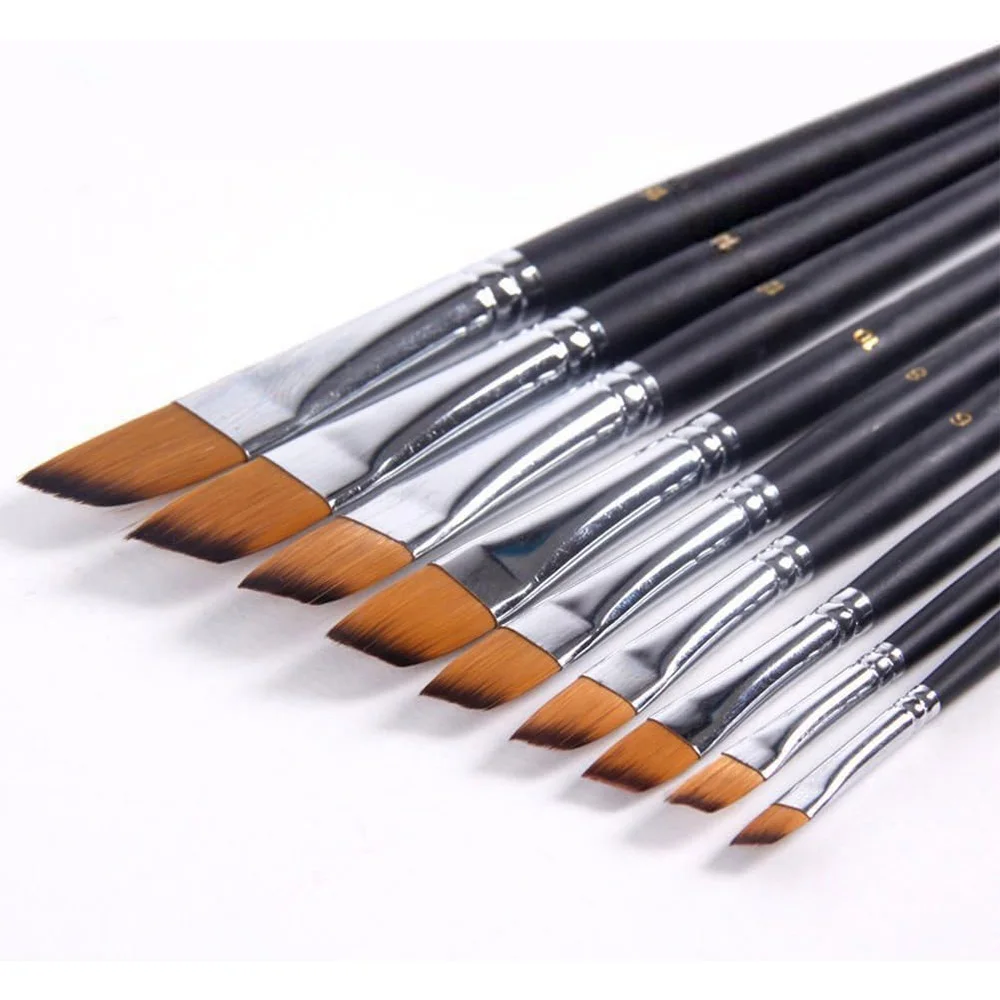 9pcs Oblique Tip Nylon Hair Long Handle Angled Paint Brushes Set Art Artist Professional Painting Supplies for Watercolor  Read more