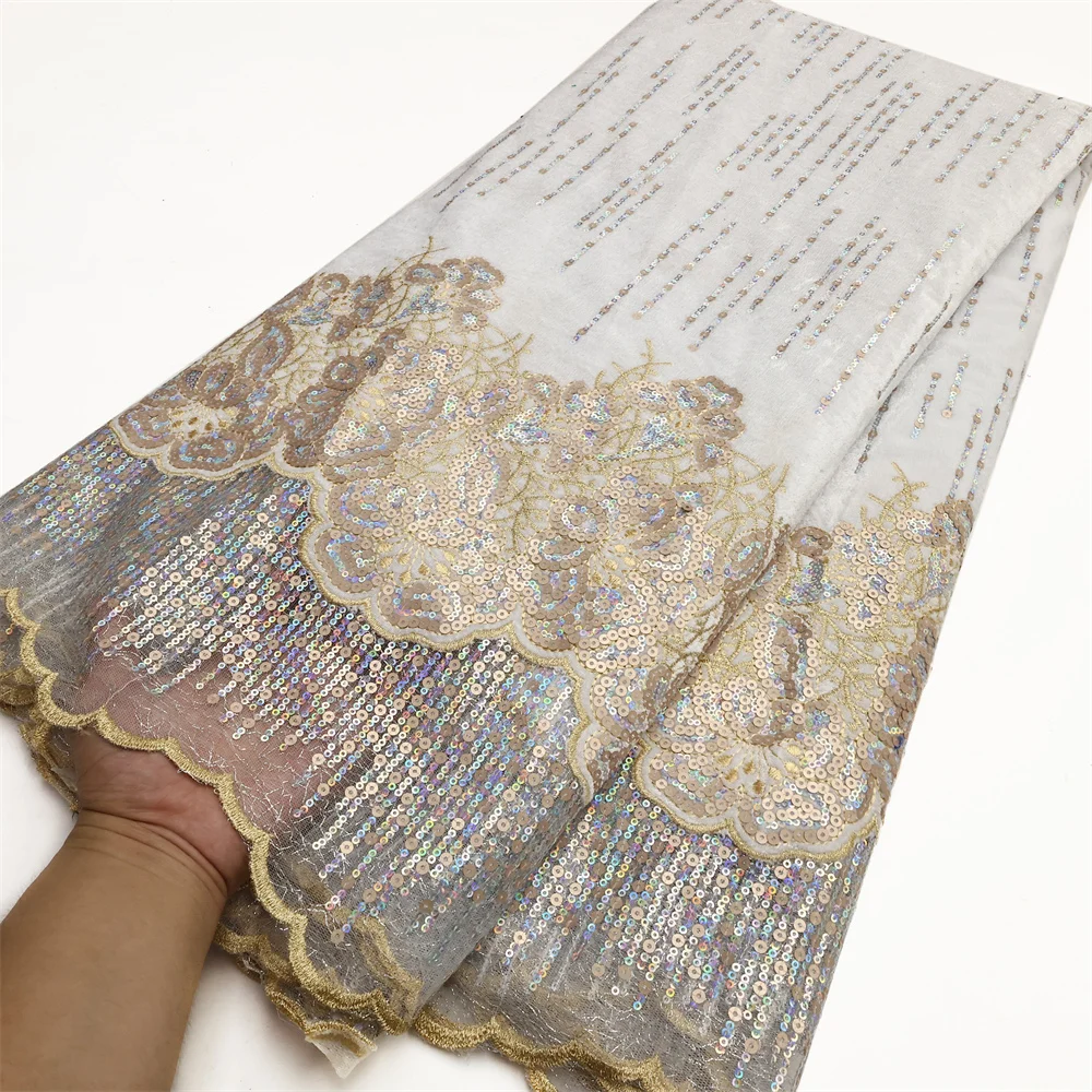 African Lace Fabric With Sequin Nigerian Embroidery French Tulle Mesh Net Lace Fabrics For Wedding Party Material Sewing QF195
