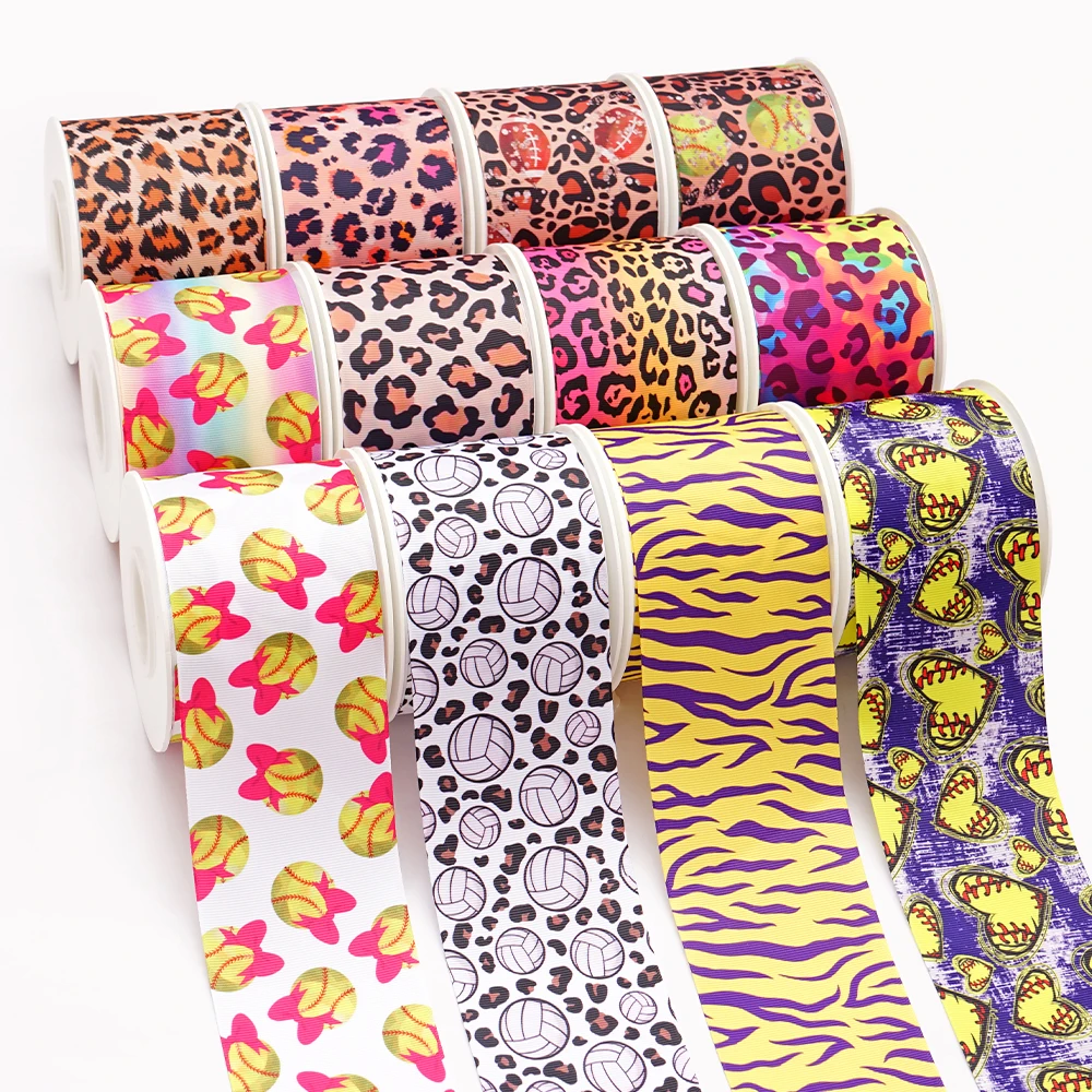 5 Yards Leopard Sport Printed Grosgrain Satin Ribbons For Bows DIY Craft Decoration Packaging Supplies. 77908