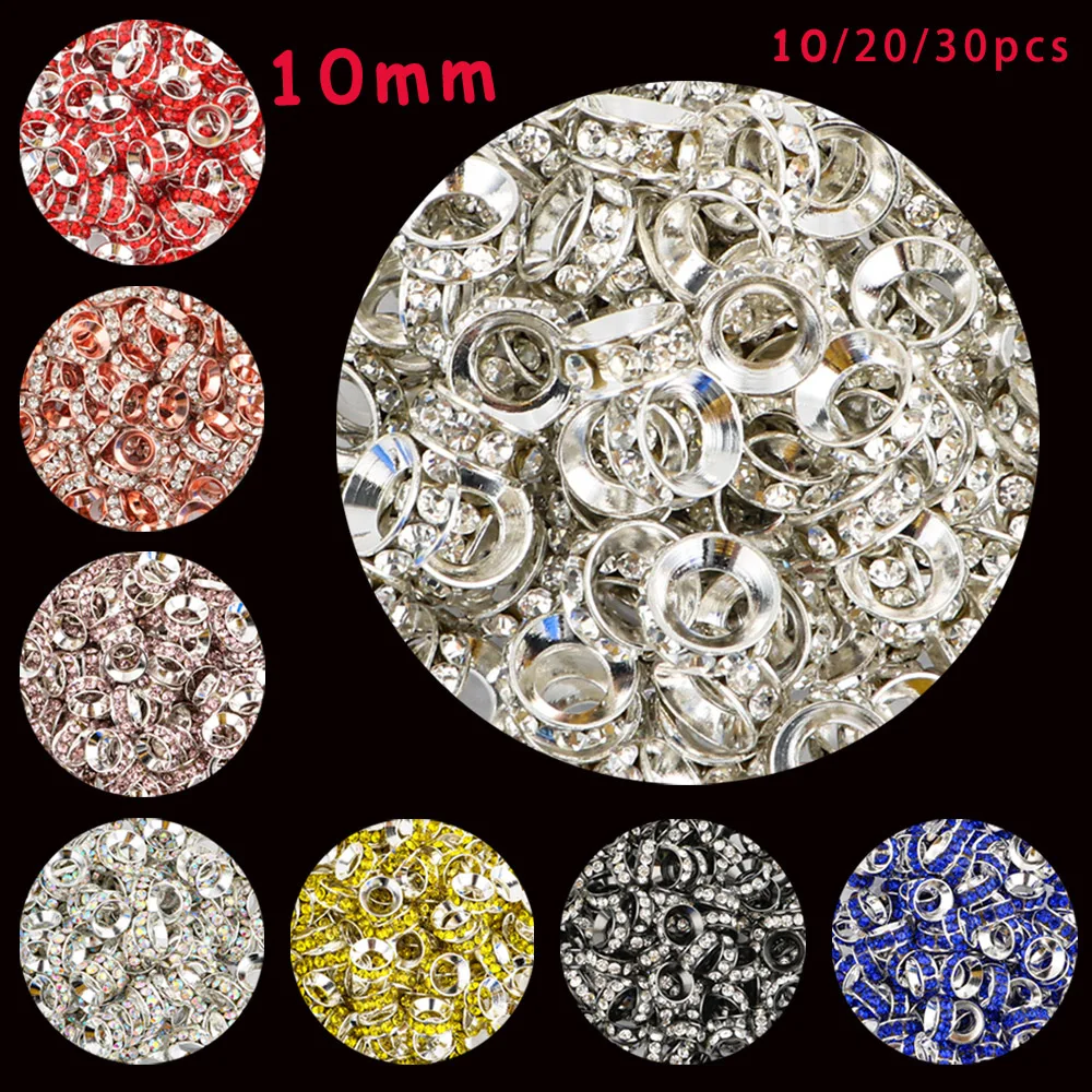 10/20/30Pcs Rhinestone Metal Spacer Crystal Bead 10MM Loose Spacer Beads For Jewelry Making DIY Accessories Supplie  Read more