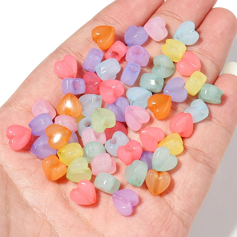 100pcs/Lot Candy Color Heart Shape Acrylic Beads for Jewelry Making Big Hole Beads Loose Beads Diy Bracelet Necklace for Child