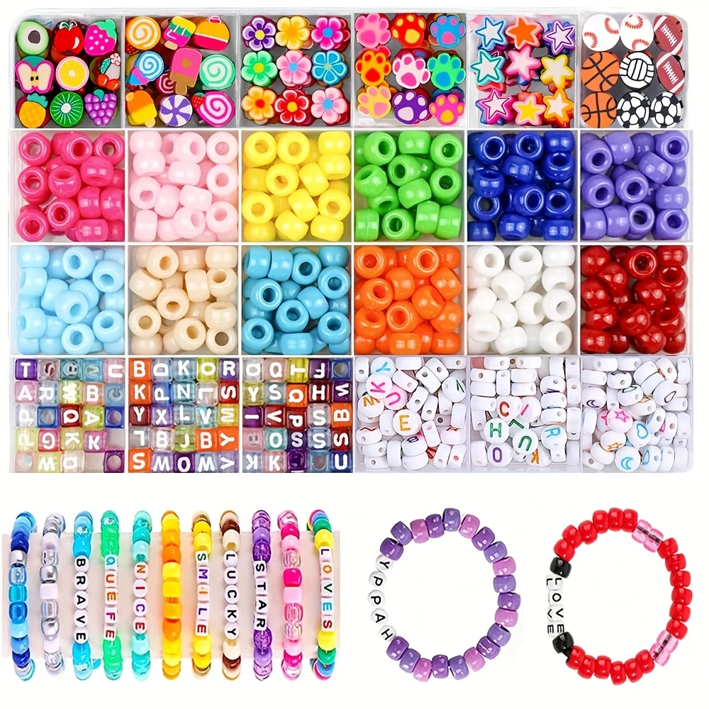 Pony Beads for Friendship Bracelet Making Kit 24 Colors Kandi Beads Set, Plastic Rainbow Bulk and 980pcs Letter Beads wit