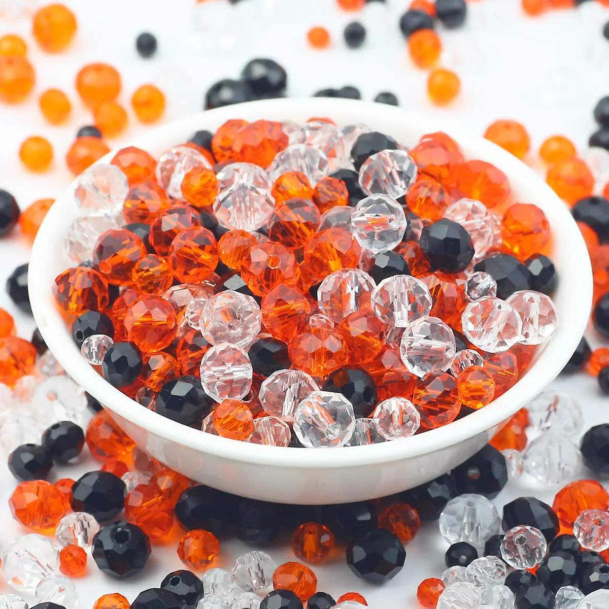 4/6/8mm Halloween-Themed Glass Beads In Black Orange White Faceted Flat Round Loose Spacer Beads For DIY Jewelry Making Necklace