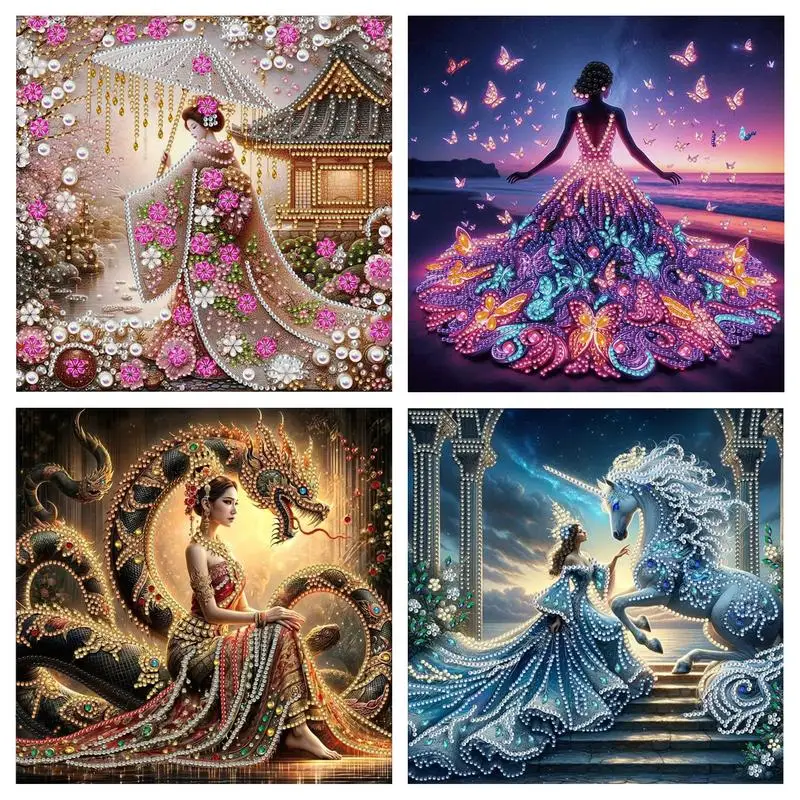CHENISTORY 30*30cm 5D DIY Partial Special Shaped Drill Diamond Painting Girl Pattern Kit Diamond Embroidery Home Decor