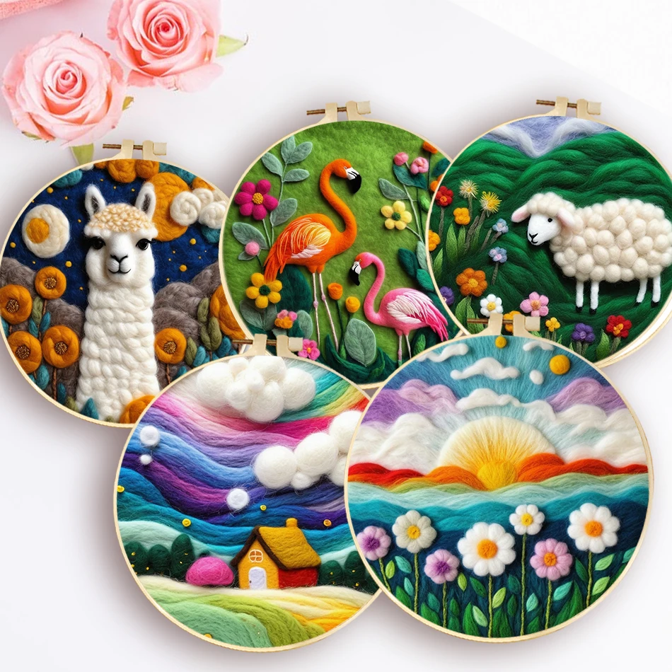 GATYZTORY 20x20cm Frame DIY Wool Needle Felting Starter Embroidery Kits DIY Wool Animal Needle Felt Picture Kit Craft Paintings