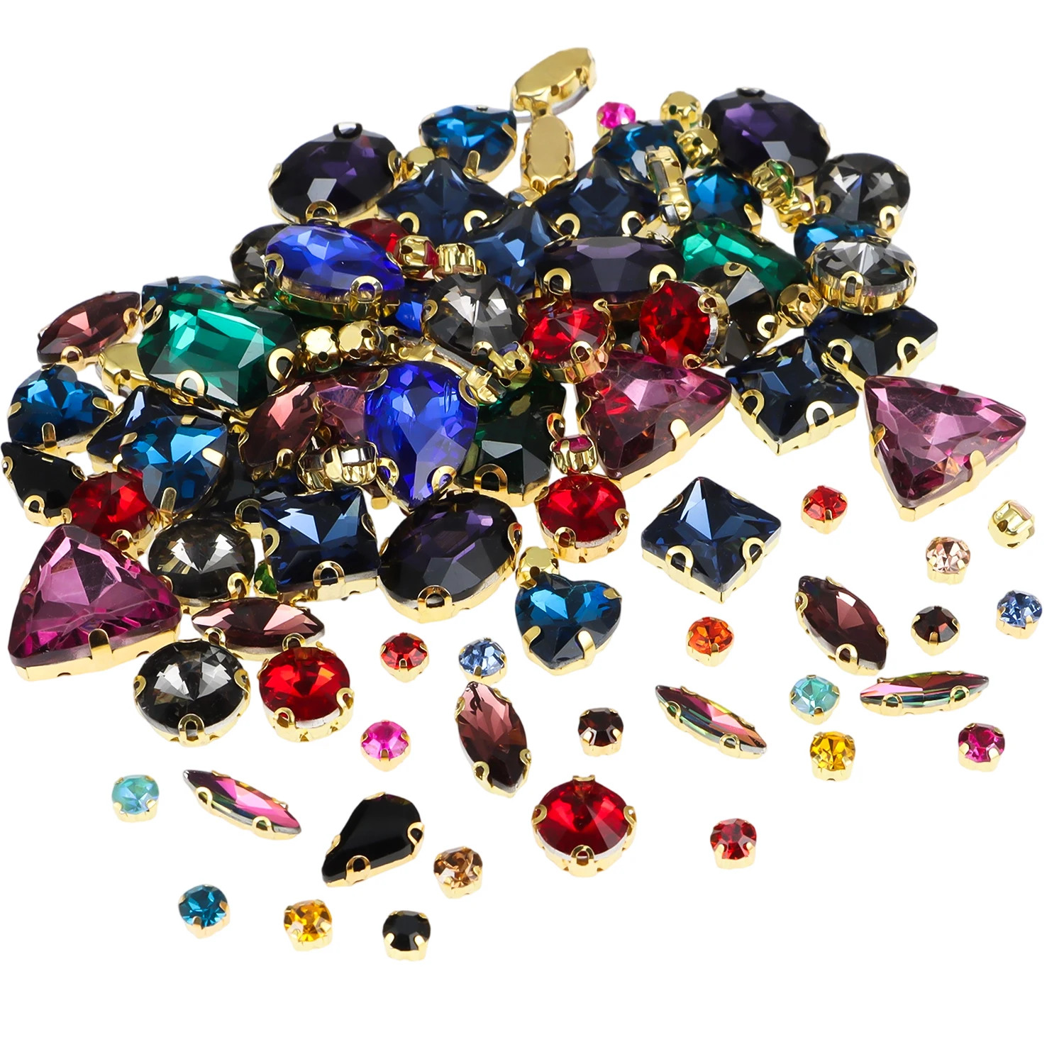130pcs/lot Gold Claw Setting Glass Rhinestone Mixed Shape Sew On Crystal Stone Diamond for Wedding Dress Shoes Bags DIY Trim