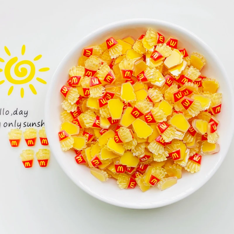 50Pcs New Cute 11*9mm Mini Cartoon French Fries Flat Back Resin DIY Jewellery Hairpin Children's Gifts Manicure Accessories A112  Read more