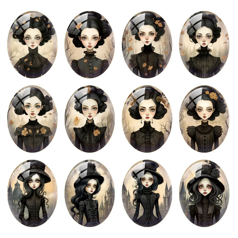 10pcs/lots Gothic Black Style Girl Oval Photo Glass Cabochon Charm Demo Flat Back Cameo For Diy Jewelry Making Accessories