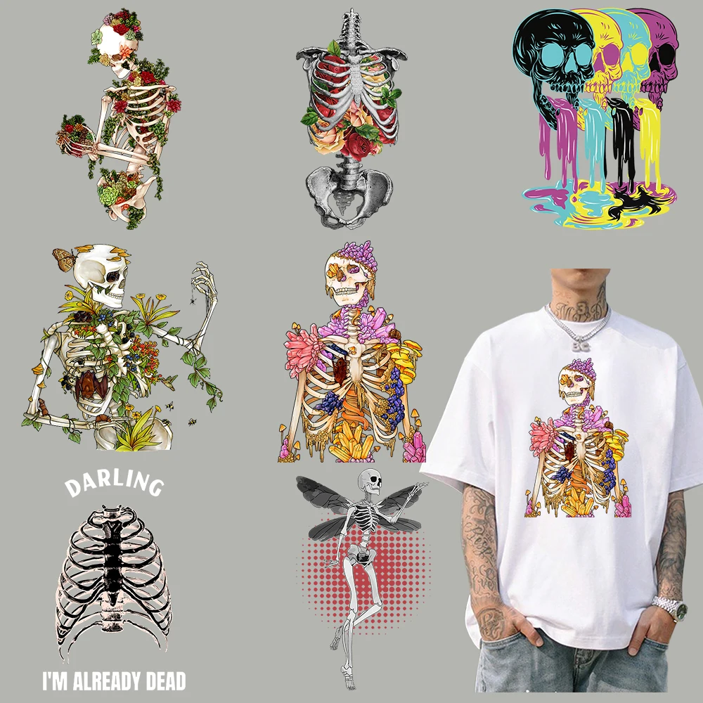 Scary Skull Iron On Transfer For Clothing Diy Washable Heat Sticker On t-Shirt Beautiful Design Patch On Clothes Applique
