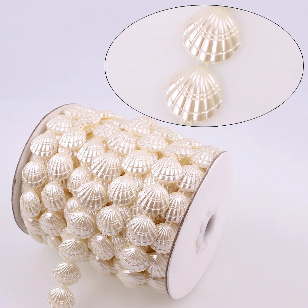 17mm 0.6 yard Shell Ivory Craft Imitation Pearl Beads Cotton Line Chain Pearl cup chain