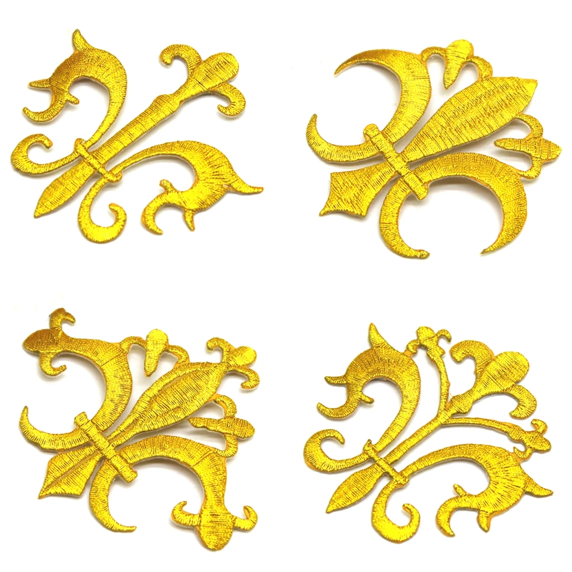 10 Pieces Iron On Flower Appliqued Gold Embroidered Patches 10 Pcs/Lot Cosplay Costumes Lotus Flower Trims Crown Appliques