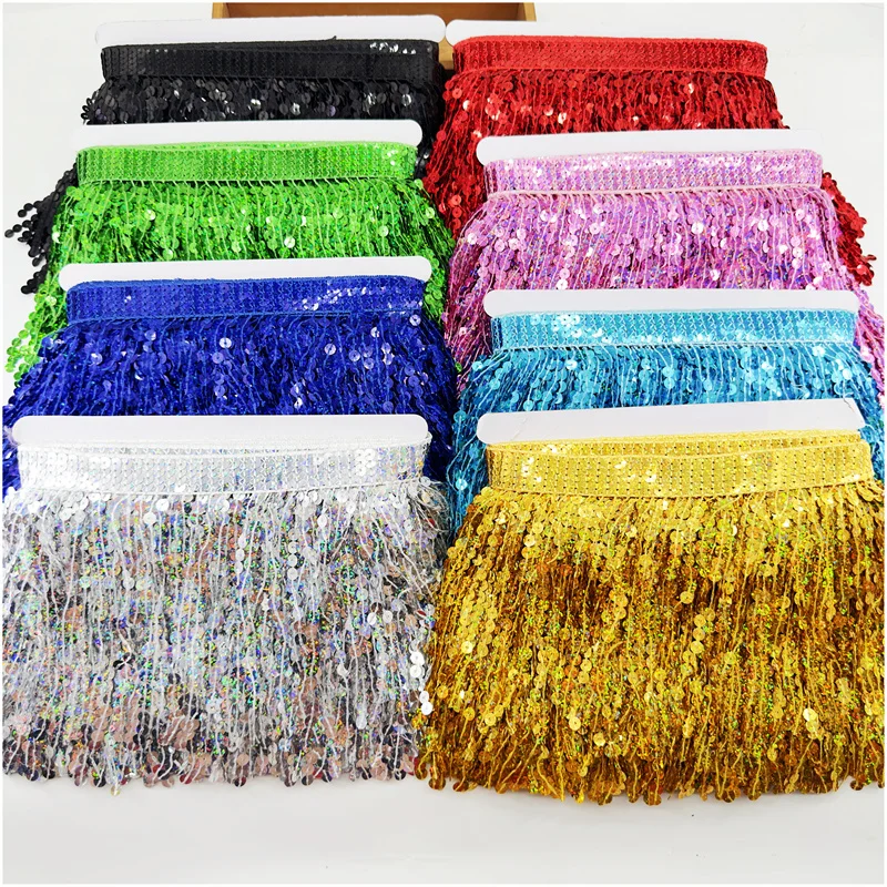Silver Gold Sequins Lace Fringe Tassel Trim 15cm Wide Ribbon Stage Performance Wedding Dress Sewing Fabric Named Diy Latin Dress