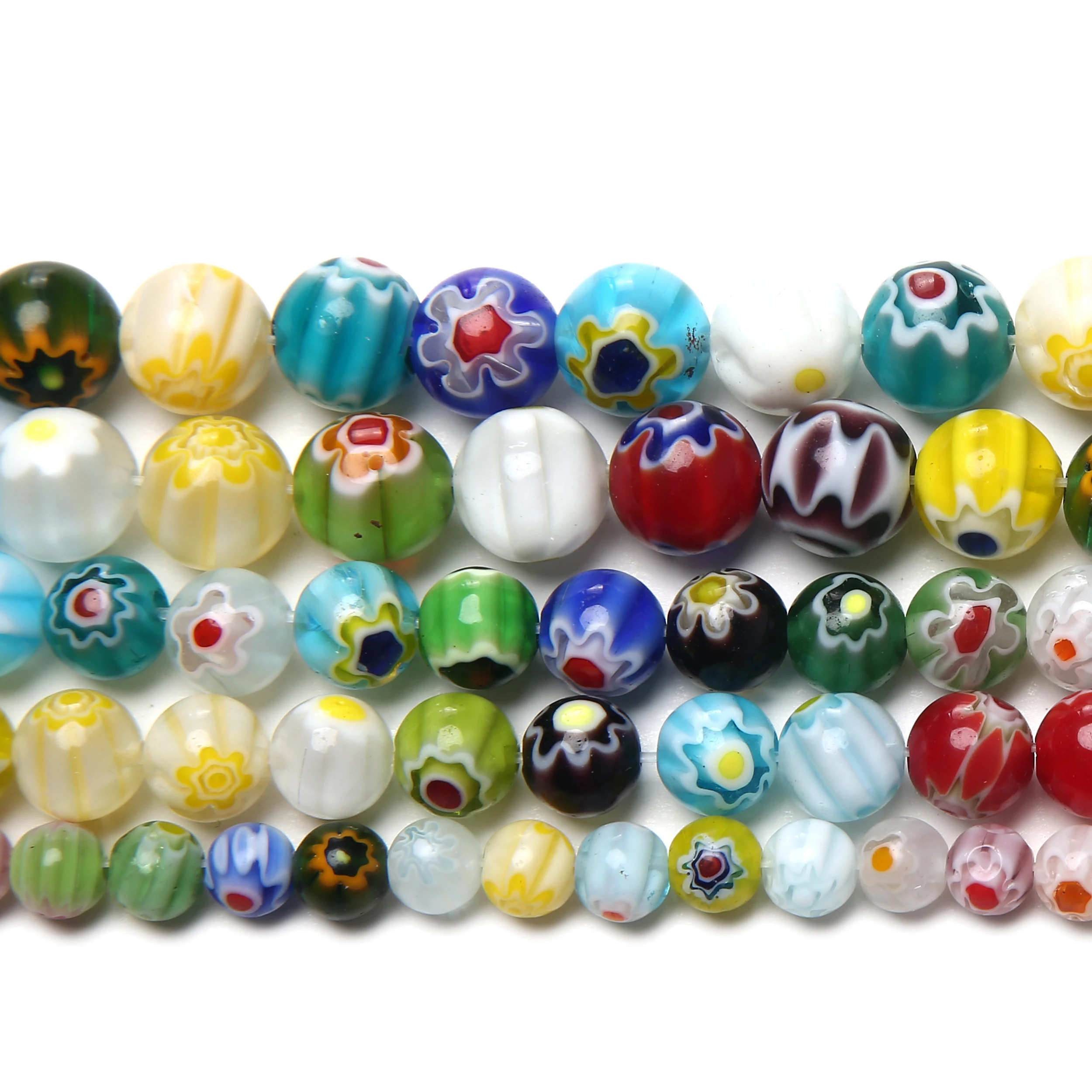 Multi Colors 2 Flower Millefiori Lampwork Glass Beads 6 8 10mm Pick Size For Jewelry Making LGB3