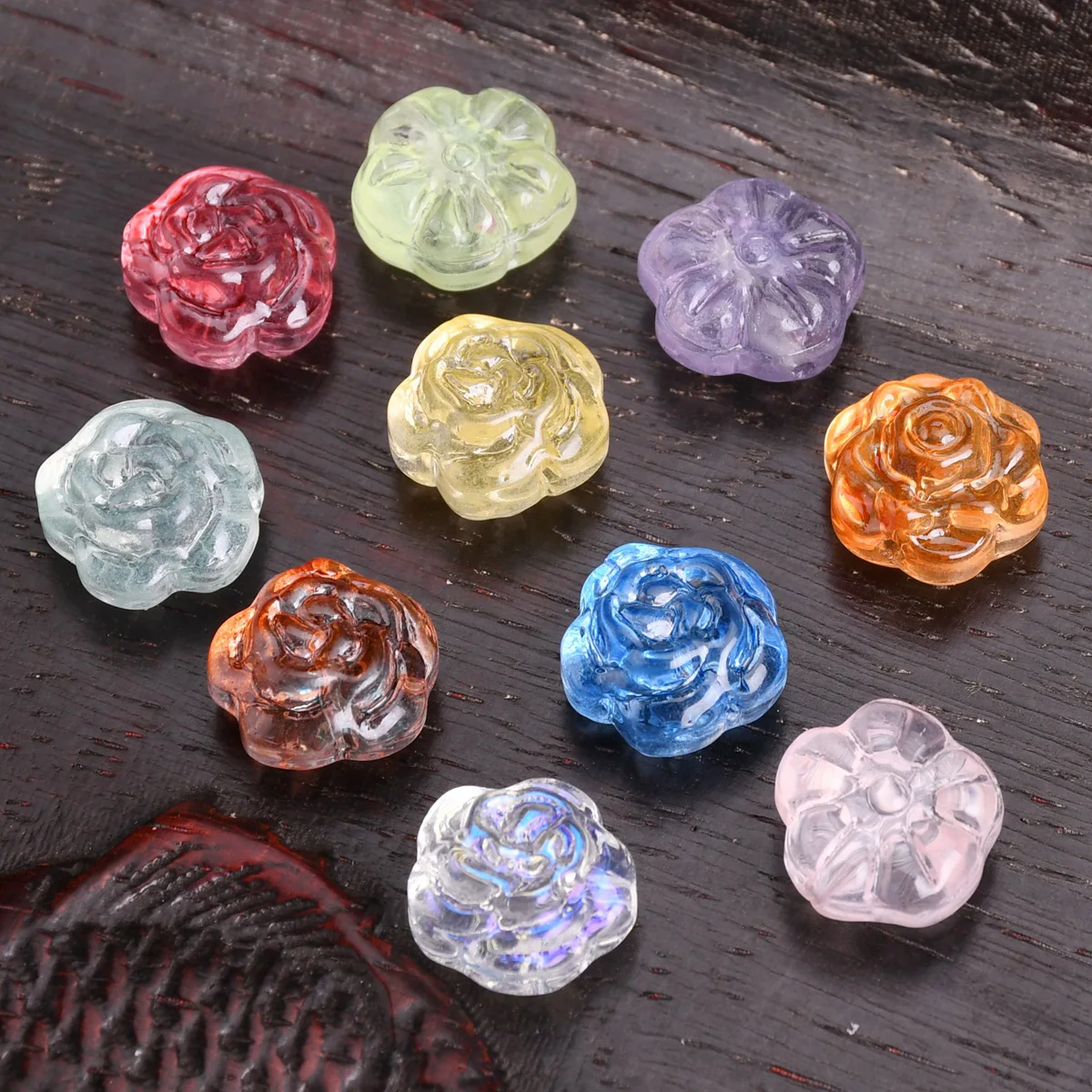 10pcs 13mm 2 Sides Flower Embossment Handmade Lampwork Glass Loose Beads For Jewelry Making DIY Bracelet Crafts Findings