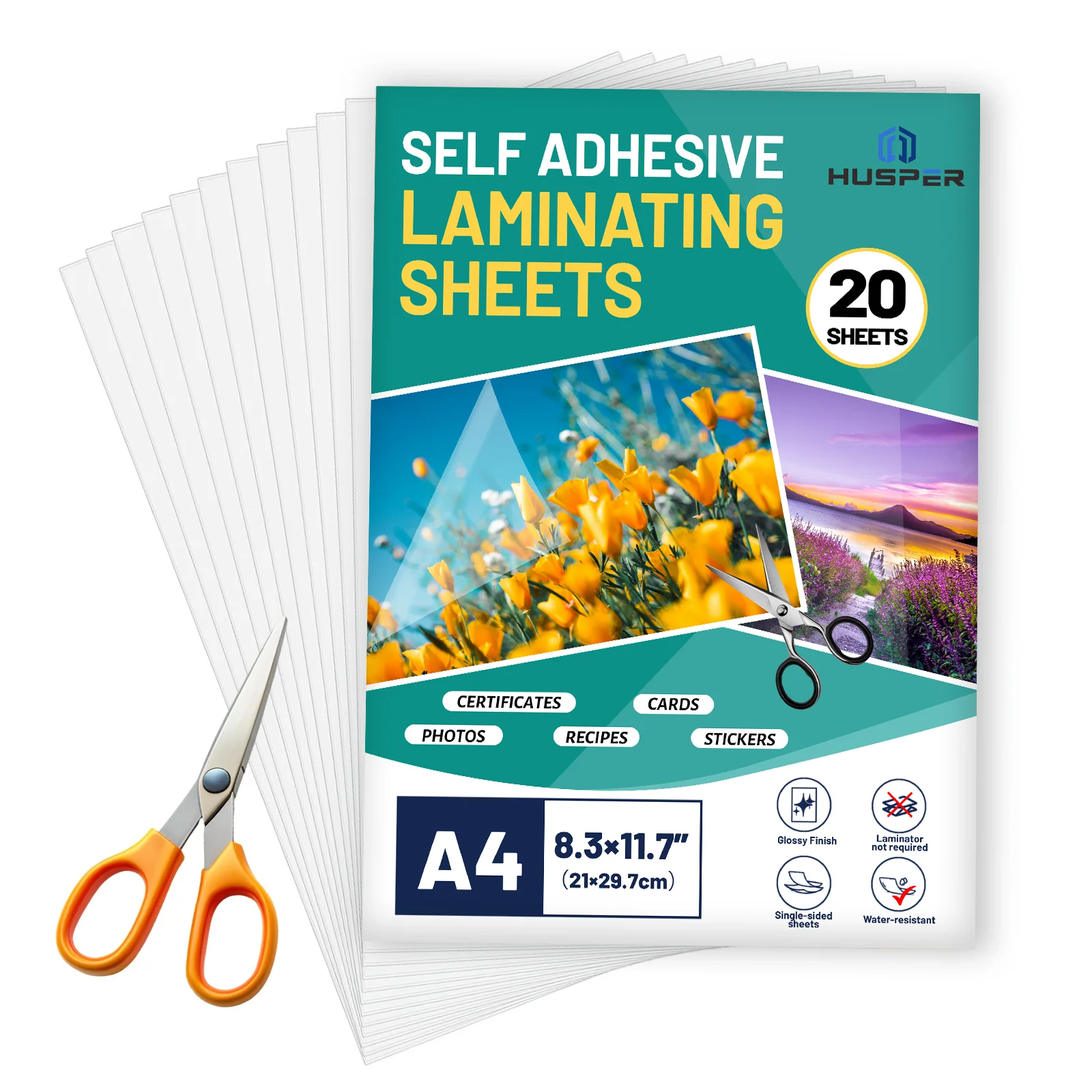 A4 Size Clear Self-Adhesive Laminate Sheets Pack of 20 Waterproof Photo Sticker Film No Machine Or Heat Required