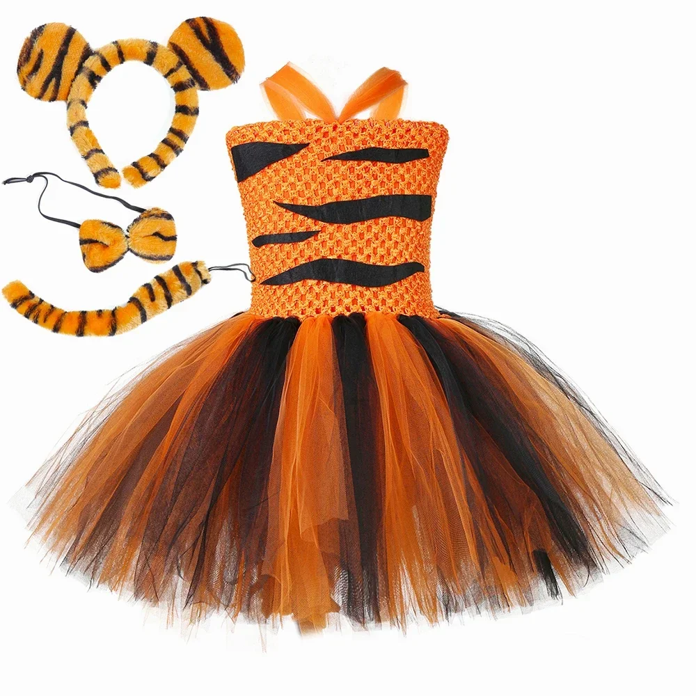 Tiger Costume for Kids Forest Theme Birthday Party Tutu Dress Outfit Toddler Girls Carnival Halloween Animal Dress Up Clothes