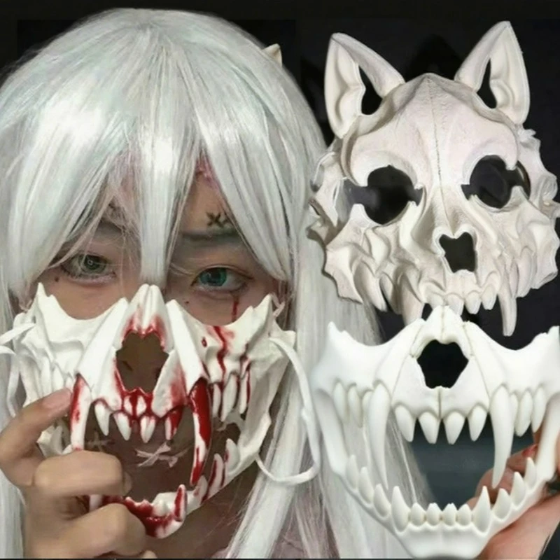 Party Skull Mask Long Teeth Demon Skeleton Half Face Mask Wolf Dragon Tiger Houjuu Nue Mask Cosplay Halloween Costume Props