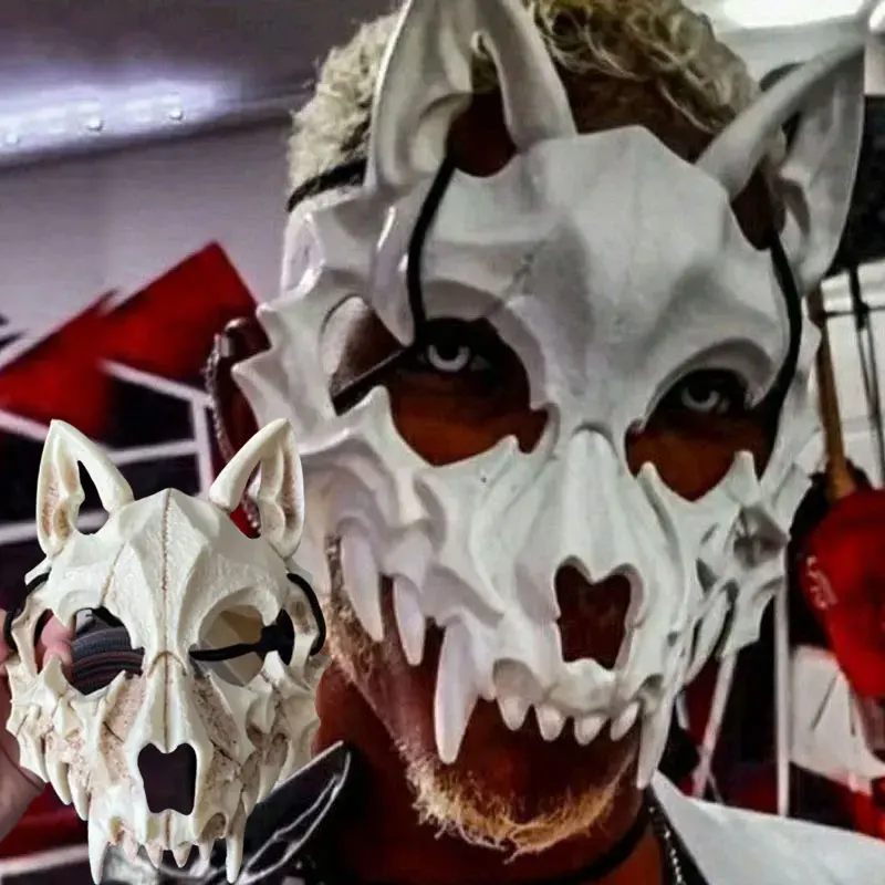 Halloween Bone Skull Masks Half-face Bloody Mask Cosplay Dragon God Fierce Tiger Night Fork Tengu Man Wolf Mask Party Decor Prop  Read more