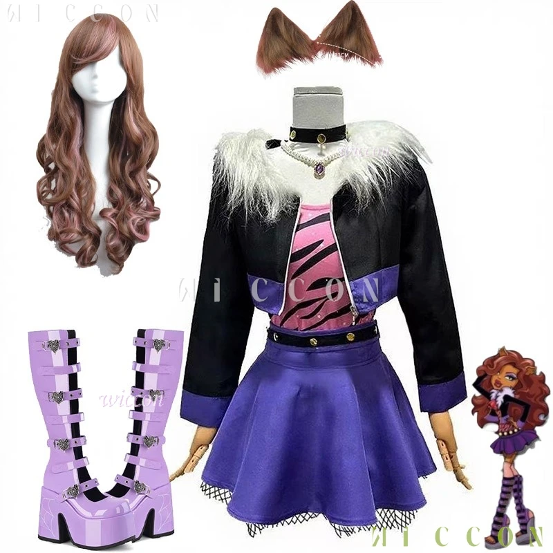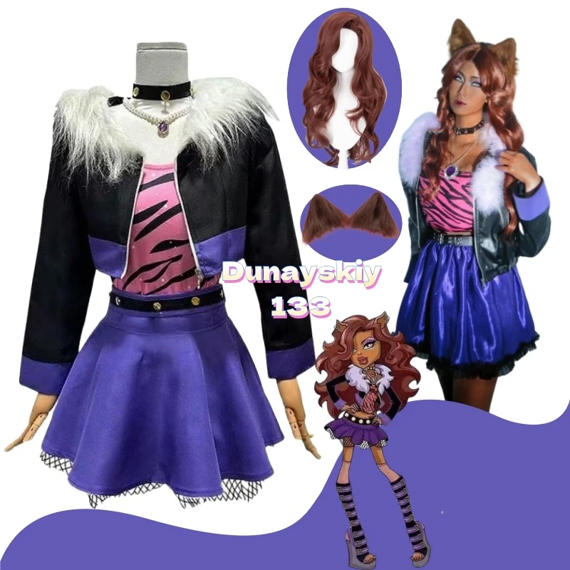 Clawdeen Wolf Anime Cosplay Full Set For Women With Costume Wig Ear Ideal For Halloween Carnival Christmas Party