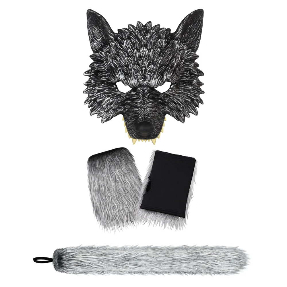 New Halloween Wolf Set Mask Gloves Tail Cosplay Party Party Dress up Props Costume Accessories