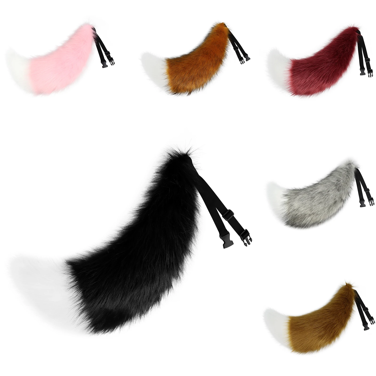 Faux Fur Wolf Fox Tail with Adjustable Elastic Belt Halloween Cosplay Costume Accessory