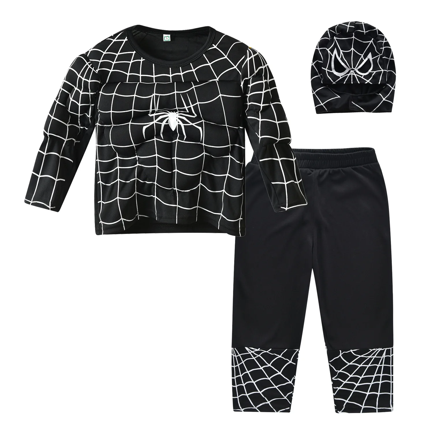 Child Black Spiderman Cosplay Costume Tops Pants Set Party Muscle Suit Christmas Superhero Venom Kids Boys Halloween Clothes