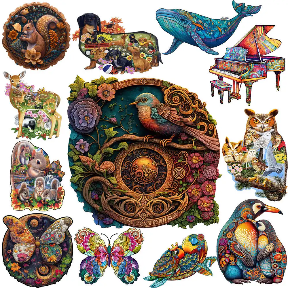 Square Wooden Puzzle High Quality Animal Puzzles Brain Twister Toys for Kids Adult Moderately Difficult Wood Puzzle