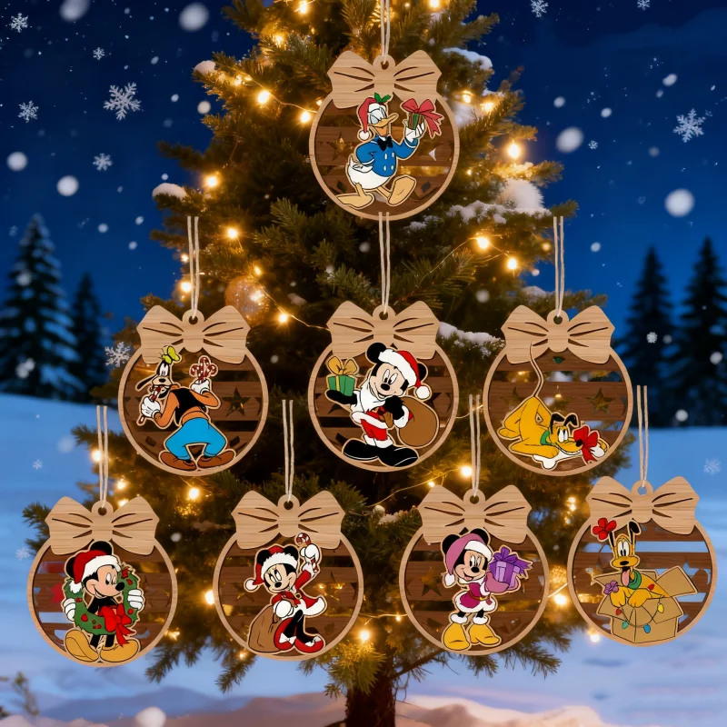 Disney 2D Flat Stitch Mickey Anime Figure Wooden Christmas Tree Ornaments Cartoon Christmas Window Set Decorations Gift