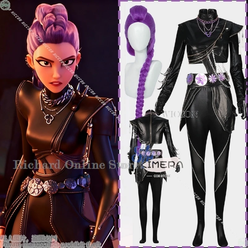 Rumi Cosplay Costume Cosplay Anime Kpop Demon Black Purple PU Jumpsuit Sexy Ninja Jirai Kei Goth Halloween Huntrix Same Style  Read more