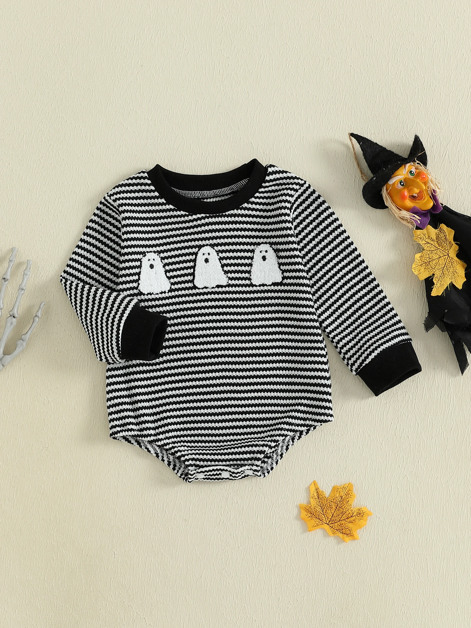 Toddler Girl Halloween Cute Romper Long Sleeve Round Neck Pumpkin Embroidery Striped Jumpsuit Costume for Kids
