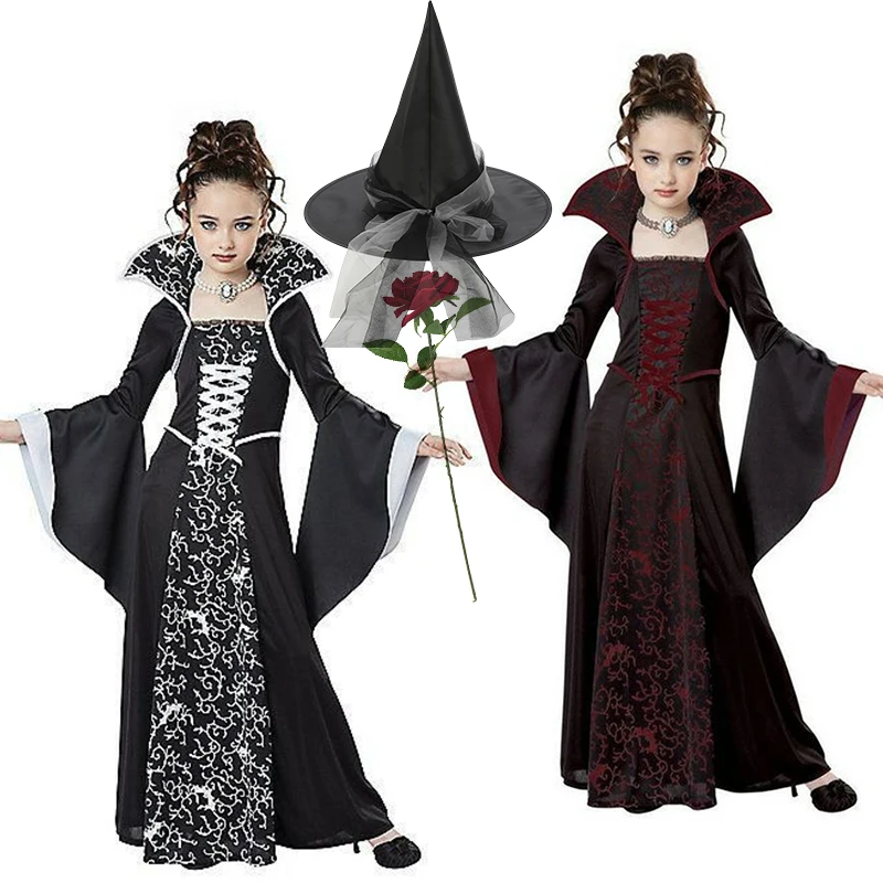 Halloween Black Witch Vampire Cosplay Costume for Kids Girls Disfraz Carnival Dress Up Party Mujer Children Performance Clothes