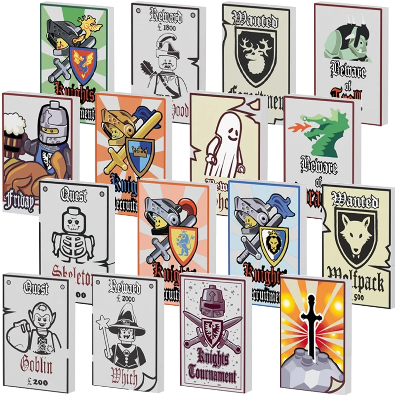 MOC Medieval Military Printed Series Building Blocks Street View Wolf Black Eagle Lion Knight Poster Accessories Bricks Toy Gift  Read more