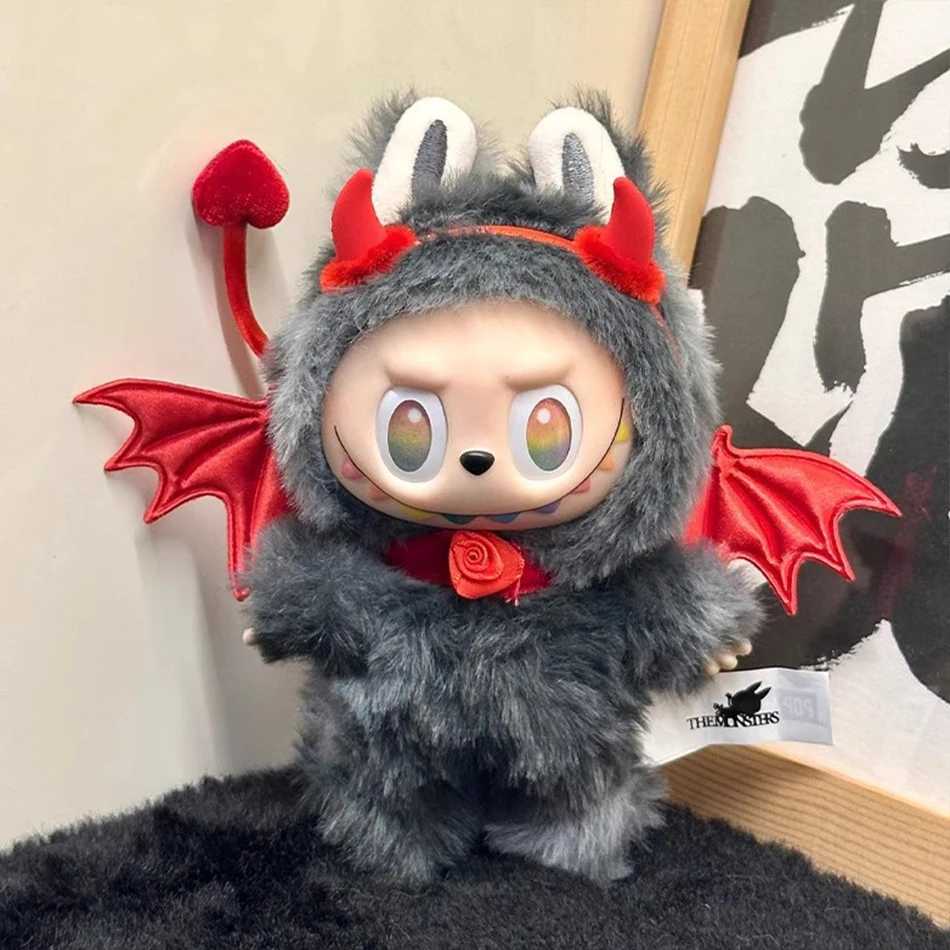 For Labubu Devil Clothes 15/17cm V1 V2 V3 Doll Mini Plush Doll Devil Wing Accessories Halloween Costume