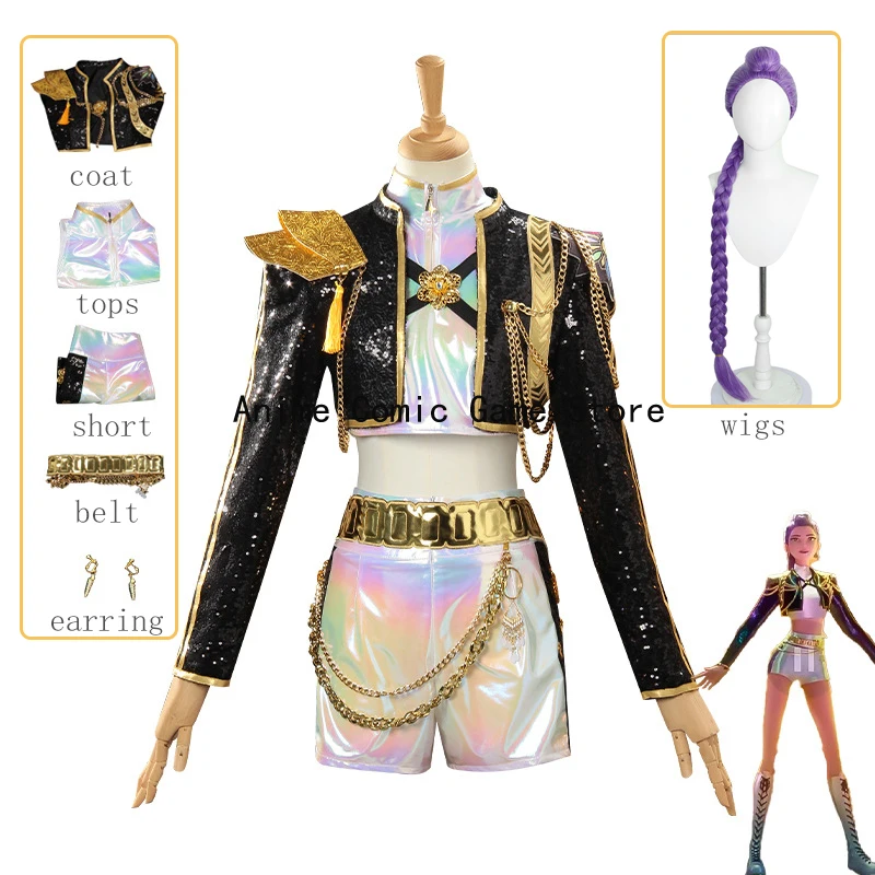 Anime KPop Demon Cos Hunters Superstar Zoe Cosplay Costume Zoey Wig Ring Full Set Girl Group Suit Women Halloween Party Roleplay