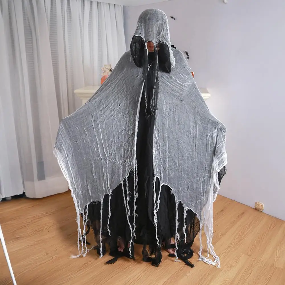 Horror-themed Cape Halloween Cloak Costume for Men Women Grim Reaper Hooded Cape Ghost Demon Cosplay Outfit for Day of Dead