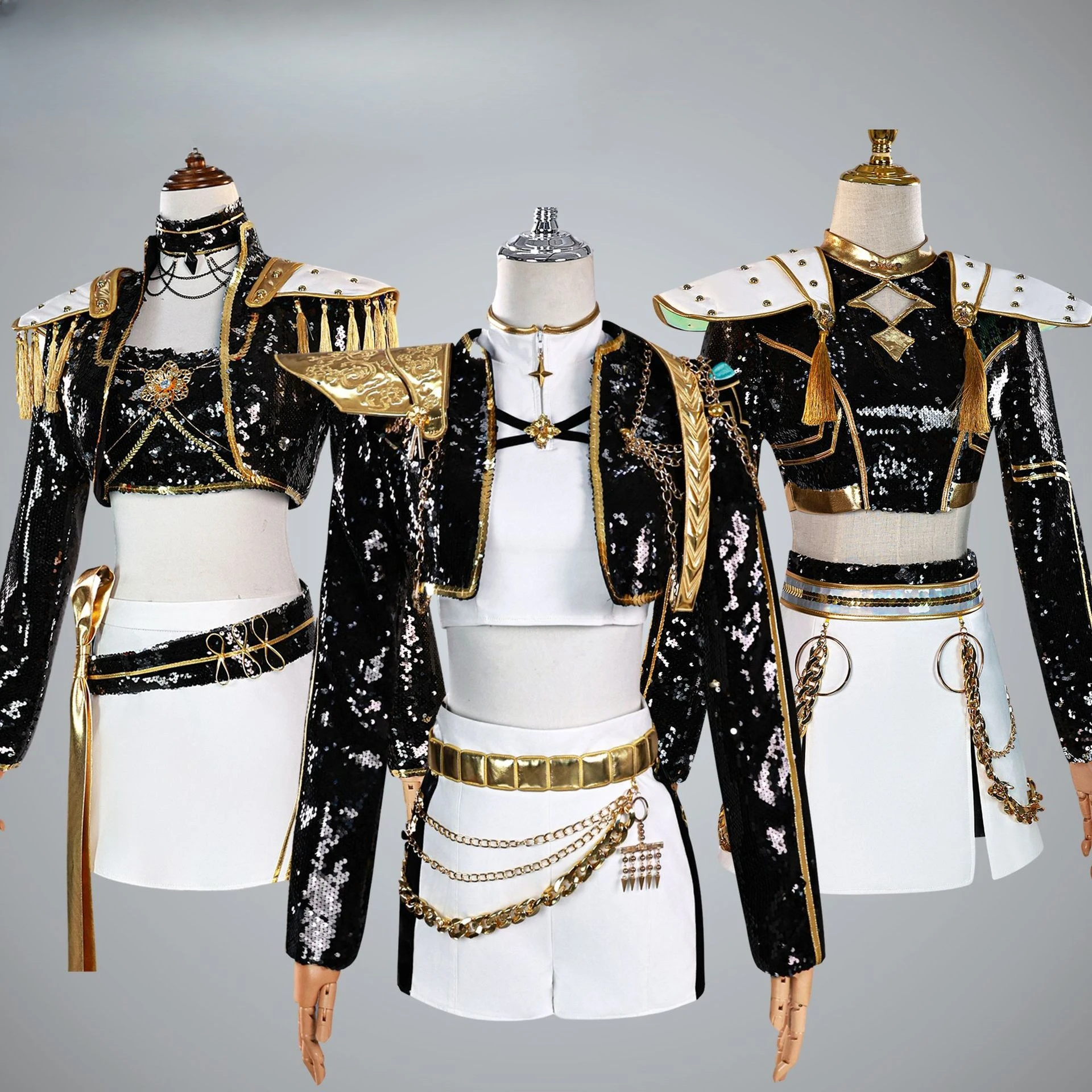 Kids Rumi Zoey Mira Cosplay KPop Demon Hunters Costume Women Girls Black Golden Suit Saja Boys Halloween Role Playing Outfits