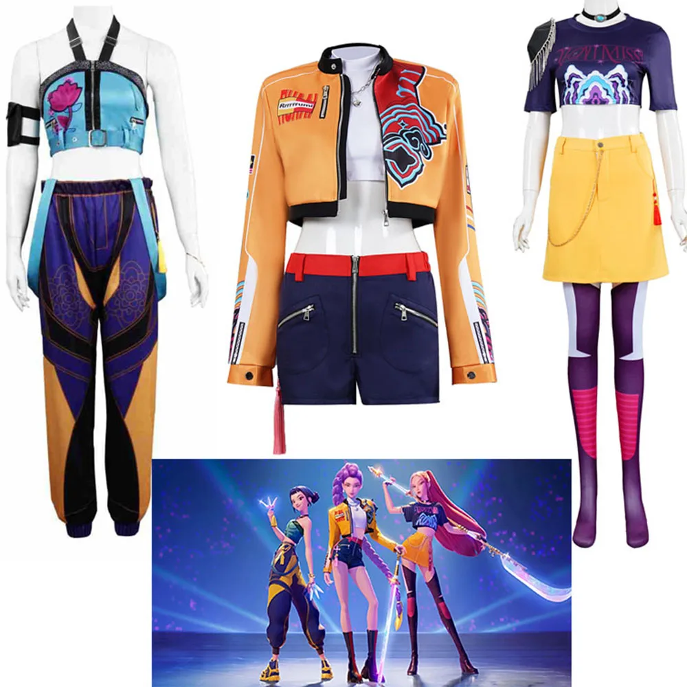 Kpop Demon Hunters Rumi Mira Zoey Cosplay Costume Fantasy RolePlay Uniform Set Top Pants Halloween Dress Up Suits Carnival Party