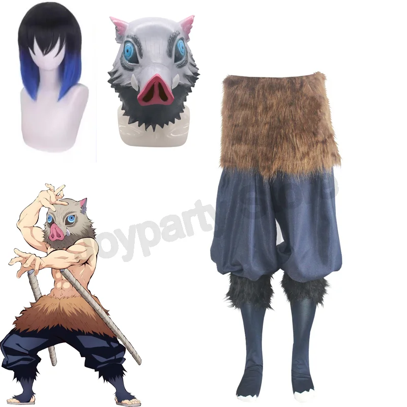 Anime Demon Hashibira Inosuke Cosplay Costume Slayer Wigs Package Pants Fancy Kimetsu Yaiba Dress Pants Masks  Read more