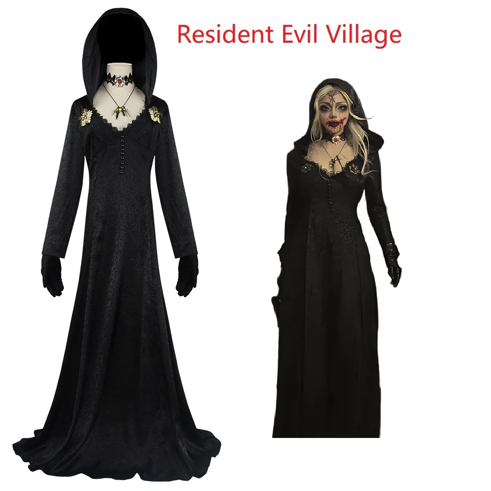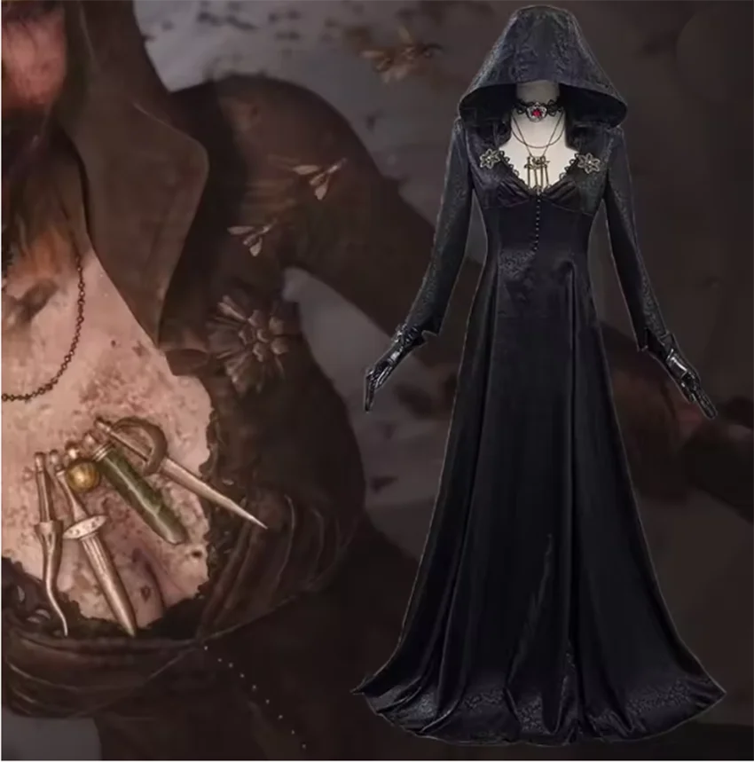 Medieval costume Daughter of Lady Dimitrescu Cosplay Costume Gothic Long Dress with Hood Vampire Bella Cassandra Halloween Dress