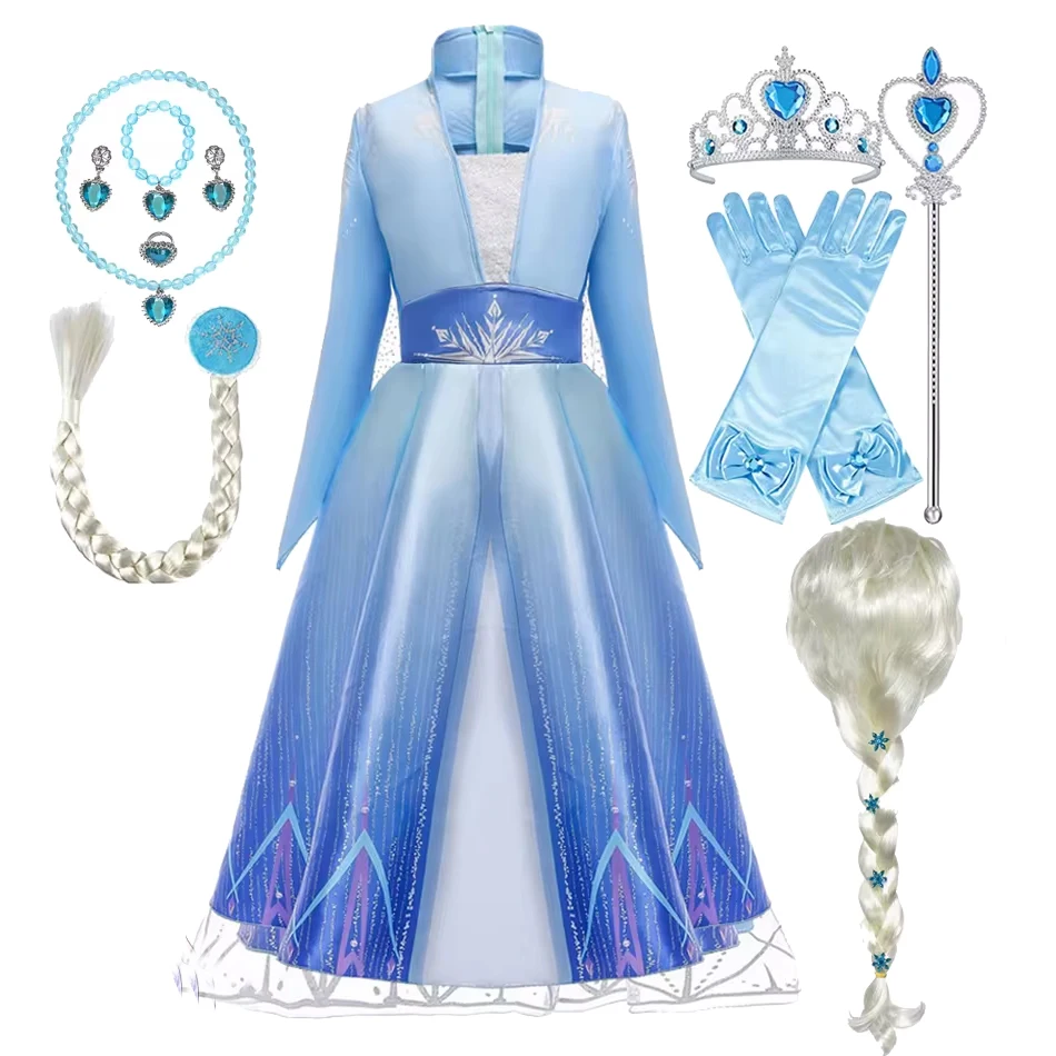 2025 Girls Dress Elsa 2 Kids Princess Cosplay Costume Fancy Children Gowns Vestidos Snow Queen Girl Carnival Costume