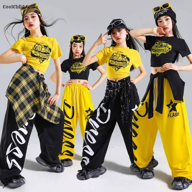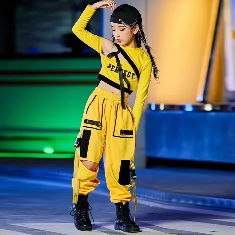 Teen Girls Hip Hop Dance Costumes Child Yellow Outfits Jazz Street Dance Wear Ballroom Hiphop Rave Clothes Stage dance Costumes