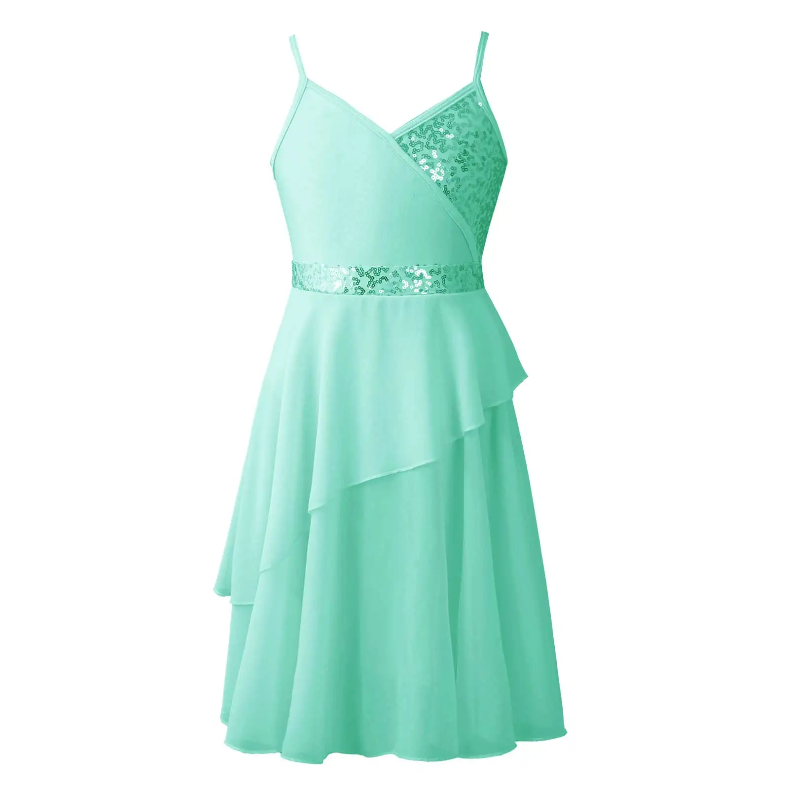 TiaoBug Kids Teens Asymmetrical Shiny Ballet Tutu Dress Gymnastics Ballerina Dance Leotard Girls Latin Lyrical Dance Costumes